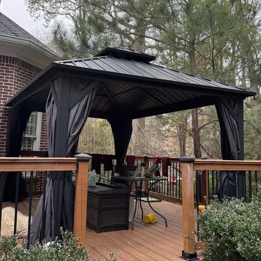 - 【Powder-coated Aluminum Frame】Hardtop gazebo is constructed with a sturdy and lightweight aluminum framework, providing exceptional strength and durability. Make sure the gazebo is suitable for long-term outdoor use.