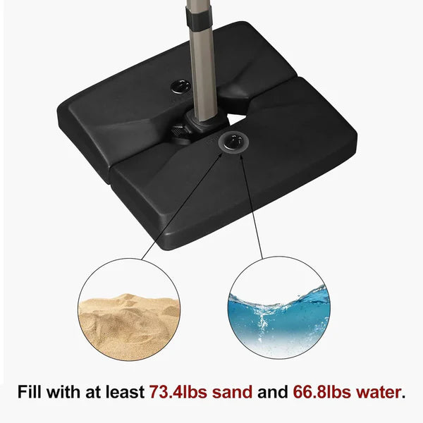 ● Large Capacity: It is recommended to add at least 73.4lb of sand and 66.8lbs of water to keep the cantilever umbrella stable.